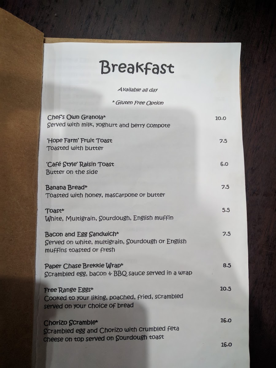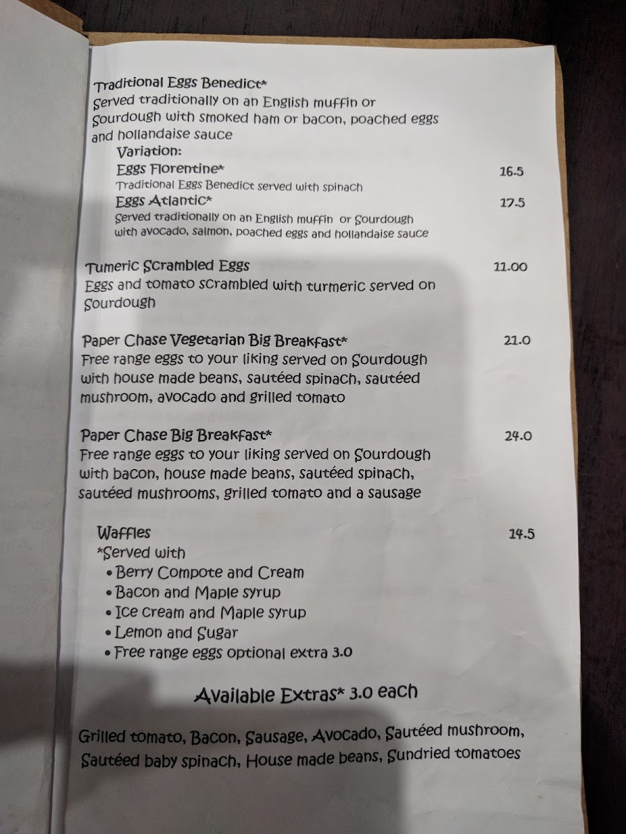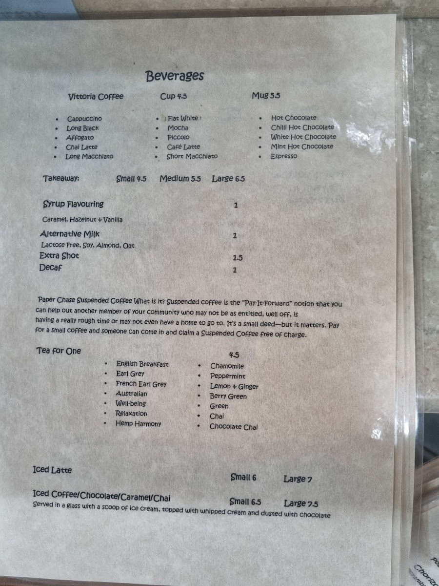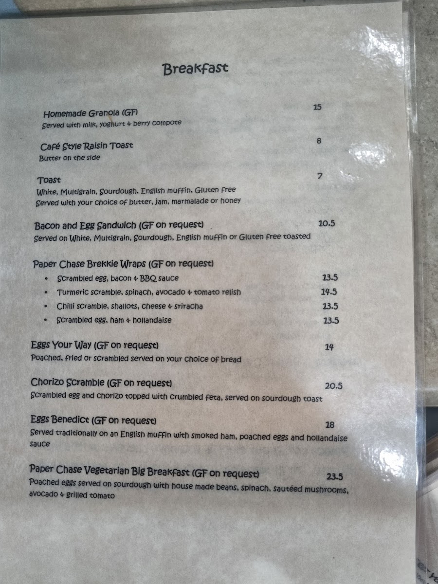 Paper Chase Cafe Menu